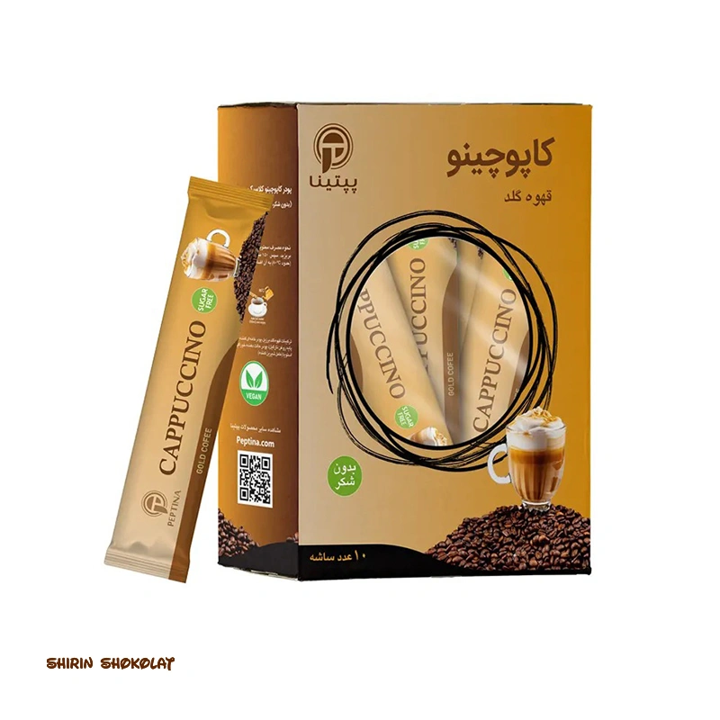 پودر کاپوچینو قهوه گلد بدون شکر پپتینا Peptina بسته 10 عددی